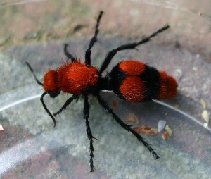 They got their name because the females look like when attacked by a few red fire ants, the velvet ants freed themselves by quickly scraping the ants off the venom from a velvet ant's sting is only mildly toxic, being one of the least chemically active.
